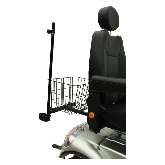 Få ekstra bagageplads med en praktisk og rummelig kurv med stokkeholder. Kan holde både en og to stokke.